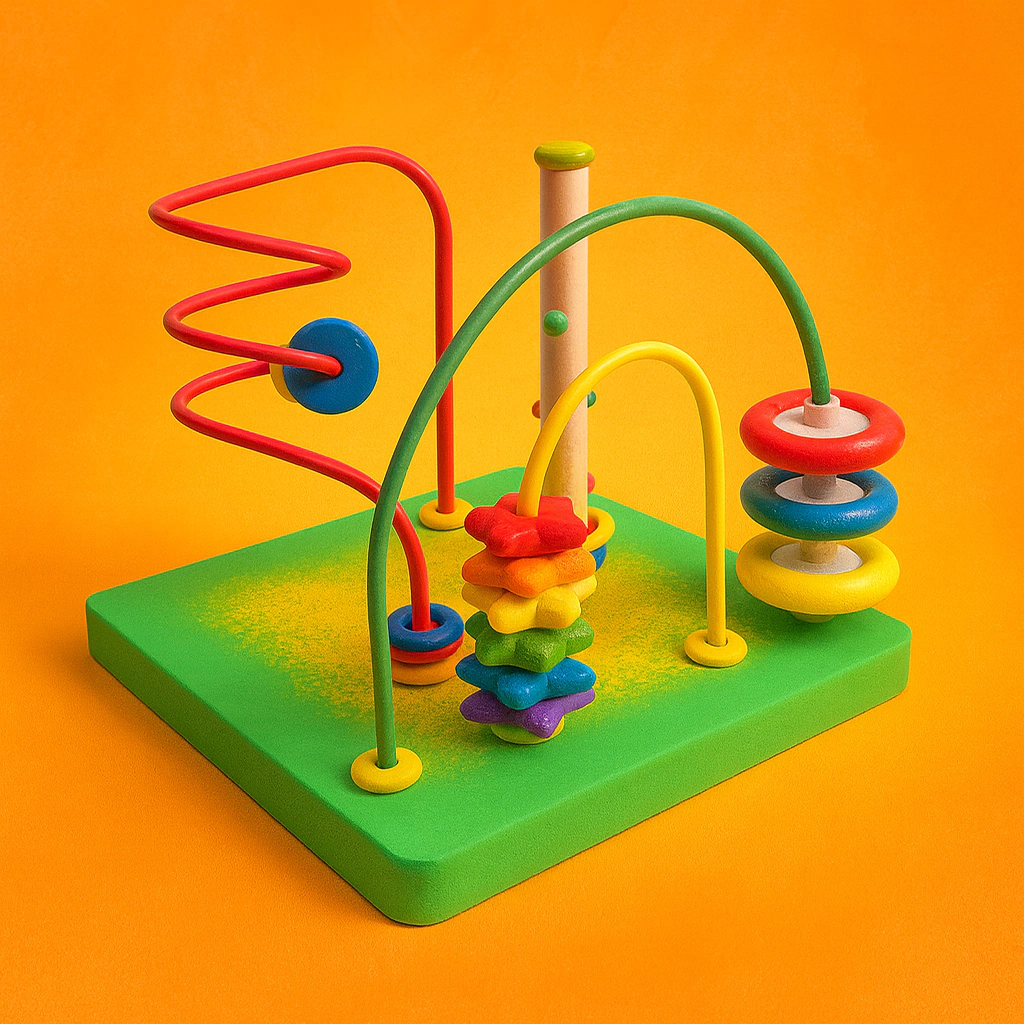 Se trata de un juego con alambres curvados y piezas de plástico que los niños deben deslizar a lo largo del recorrido, lo que les ayuda a fortalecer los músculos de la mano y la muñeca, además de mejorar la precisión de sus movimientos.