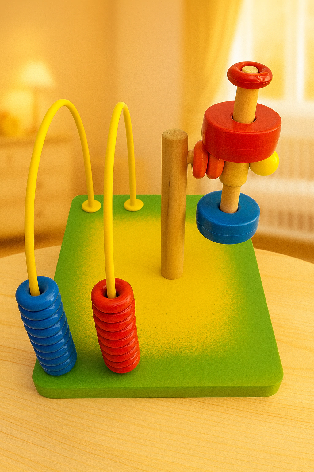 Estás viendo nuestro juego Laberinto con molino, hecho en plástico y madera super durable. No se rompe con nada y funciona para la primera infancia. Es un juguete didáctico diseñado para estimular la motricidad fina y la coordinación mano-ojo en los niños: ¡resulta hipnótico para los niños!